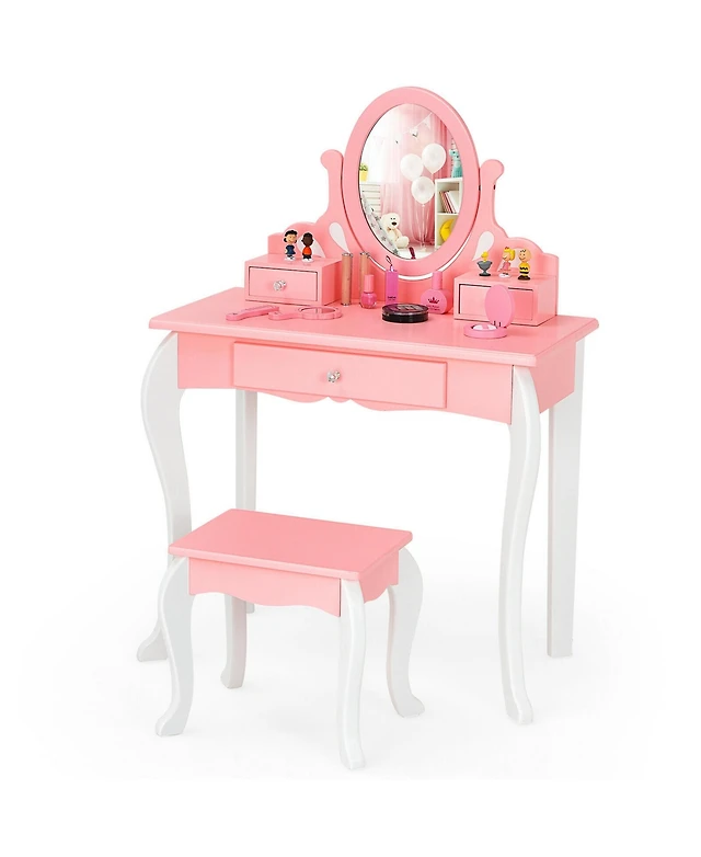 10 Dimmable Lights Vanity Table Set with Lighted Mirror and Cushioned Stool