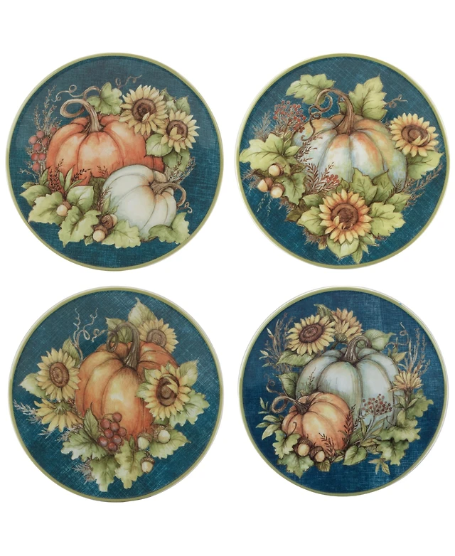 Certified International Harvest Blessings Set of 4 Canape Plates