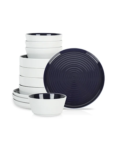 Euro Ceramica Neree 16 Pc. Double Bowl Dinnerware Set, Service for 4