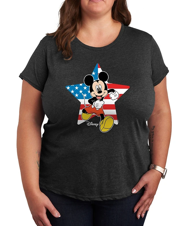 Hybrid Apparel Plus Disney Mickey Usa Flag Star Graphic Crew Neck T-Shirt