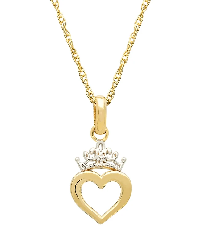Disney Children's Princess Heart & Tiara 15" Pendant Necklace in 14k Gold