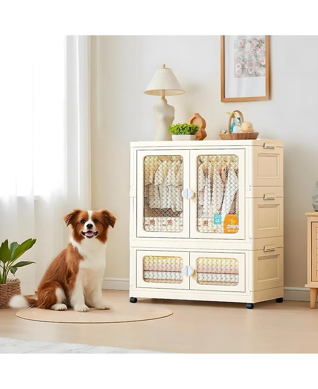 Stackable Storage Bins, Plastic Collapsible Storage Containers with Doors, Wheels and Hanging Rods, Large Lidded Closet Organizers Cabinet for Home Of