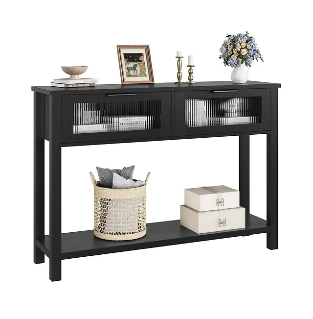 gaomon 43'' Narrow Console Table with Glass Drawers 2 Tier Sofa Table Entryway Table w/Storage Wood Console Table Side Table