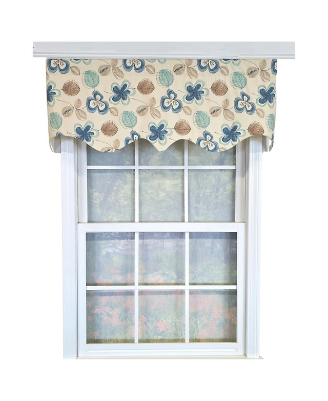 Rlf Home 3" Rod Pocket High Quality Fabric Floral Essence Pleated Valance for Windows 50" x 16" Blue