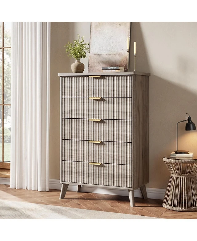 Modern 5-Drawer Dresser – White Cabinet with 5 Drawers, Ideal for Living Room or Farmhouse Closet Storage