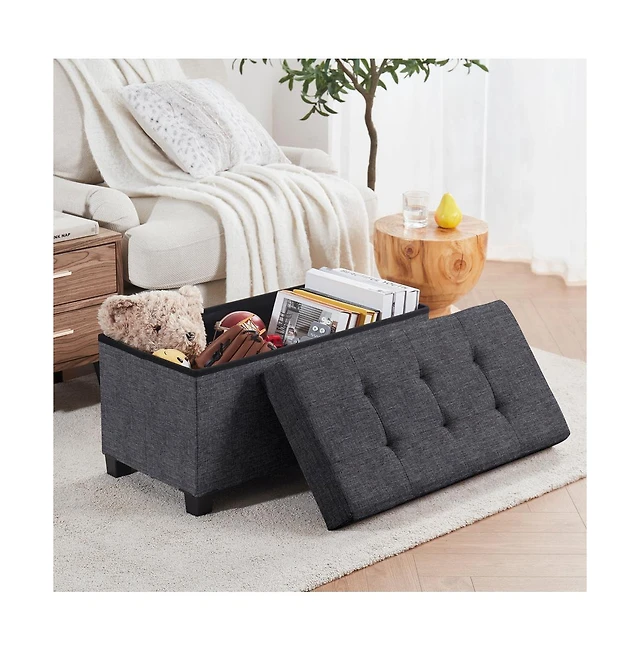 gaomon Rattan Storage Bench with 2 Safety Hinges, Storage Chest, Toy Box, Entryway Storage Bench Supports 260 lb, Toy Chest Organizer, Easy Assembly