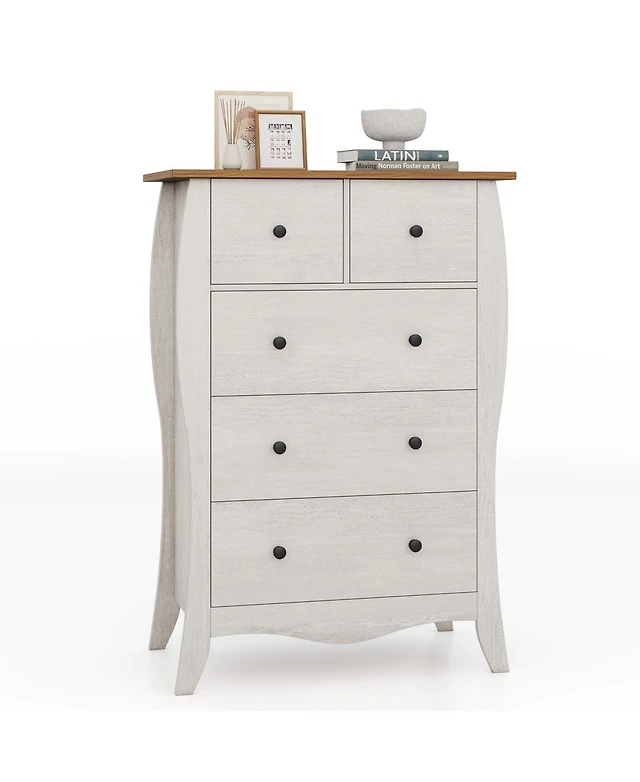 Rainsken 2 Drawers Nightstand with Curved Profile Design, Bedside Table with Metal Feather-Shaped Handles