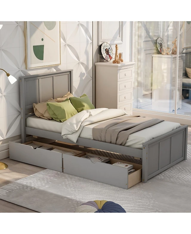 gaomon Twin Daybed with Trundle, Industrial Wood Grain Headboard, Steel Slats Support Sofa Bed for Bedroom