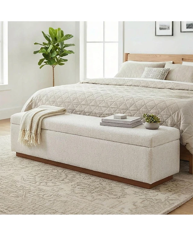 2 in 1 Round Storage Ottoman with Hidden Stool and Wood Top Rattan Fabric Coffee Table for Living Room Bedroom No Assembly Needed-The Pop Home