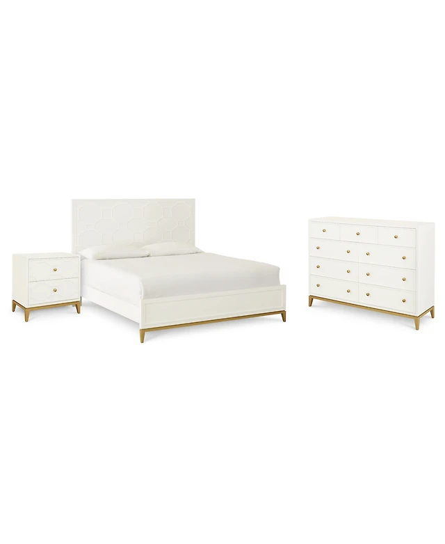 Tribesigns Nightstand for Bedrooms, White and Gold Light Wood Grain Nightstand with 3 Drawers, End Tables Storage for Living Room