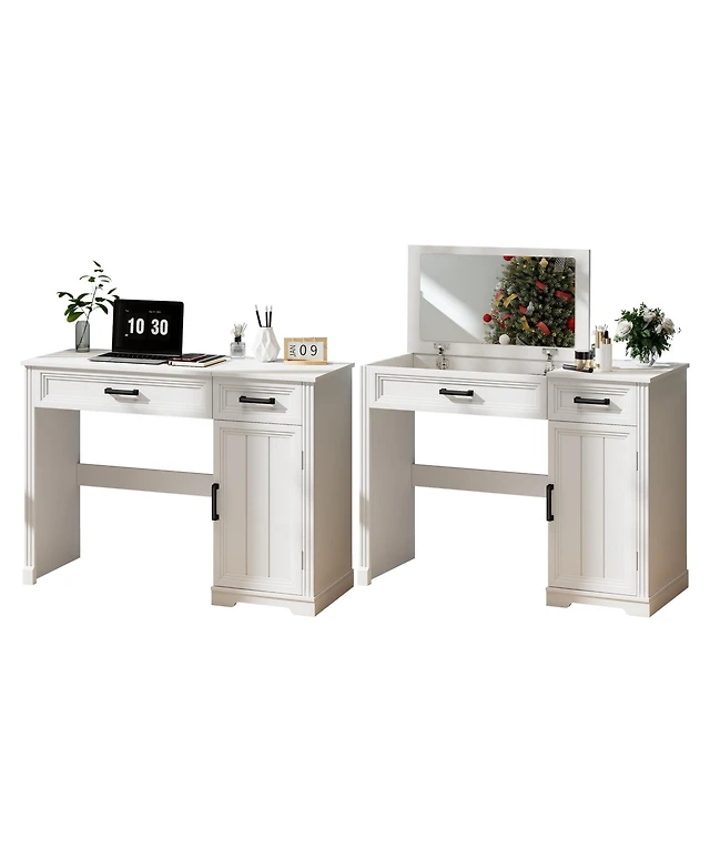 Sugift Makeup Vanity Set with Mirror and Cushioned Stool