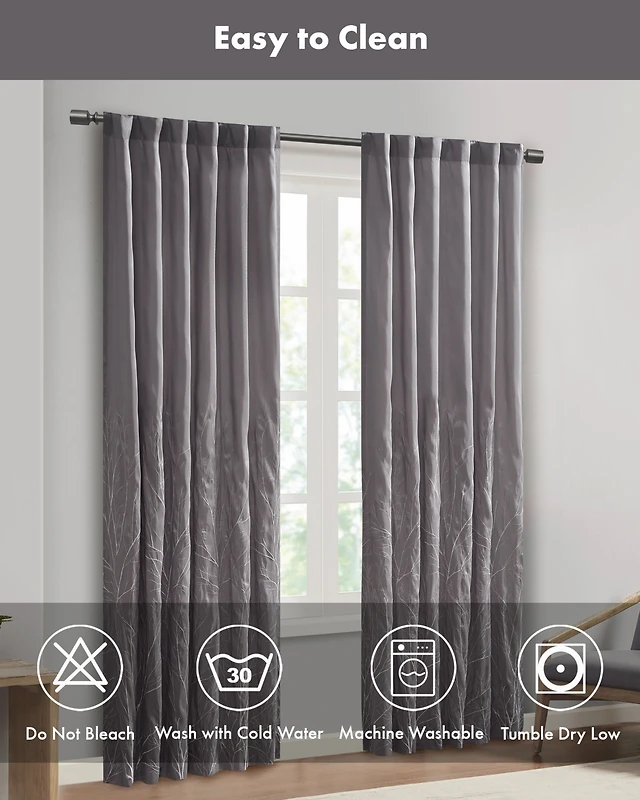 Madison Park Andora Botanical Embroidered Curtain Panel, Single with Privacy Lining for Bedroom and Living Room, 84 inch length