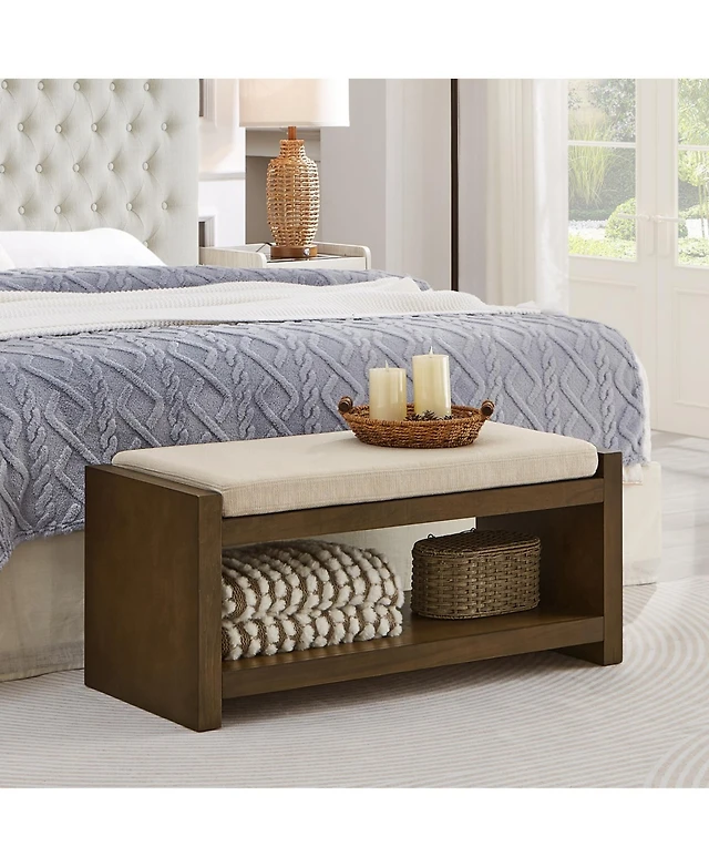 Streamdale Furniture 47" Beige Bench with Shoe Rack & Removable Cushion