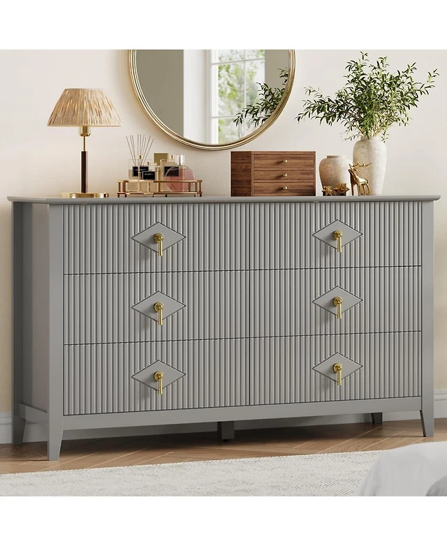 gaomon 6 Drawer Dresser for Bedroom, Horizontal Chest of Drawers, Fluted Panel Wood Dresser, Small Space Bedroom Clothing