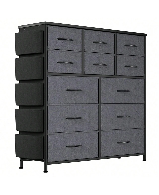 7-Drawer Dresser for Bedroom Chest of Drawers with 2 Large Fabric Bins