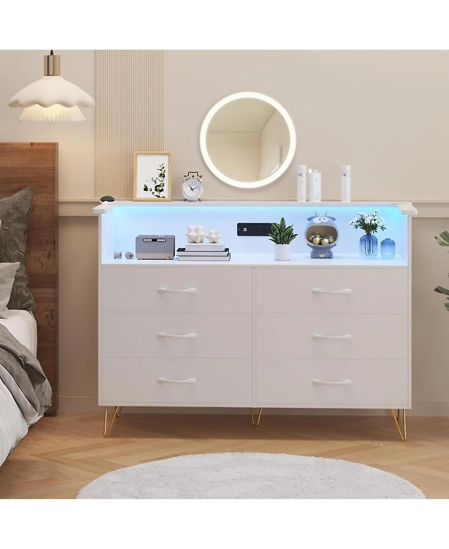 gaomon Dresser for Bedroom with 6 Drawers, Changing Table Dresser with Changing Table Top, Nursery Dresser Diaper Changing Station for Baby with Power