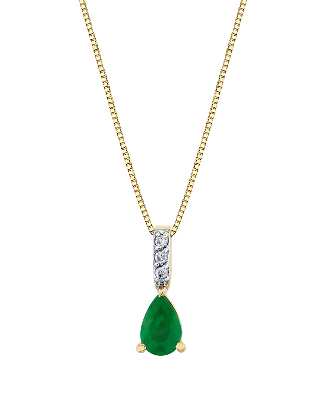 Macy's Emerald (3/8 ct. t.w.) & Diamond Accent Pendant Necklace in 10k Yellow Gold