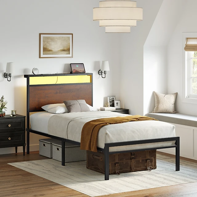 Frances Upholstered Linen Blend Platform Bed, Queen