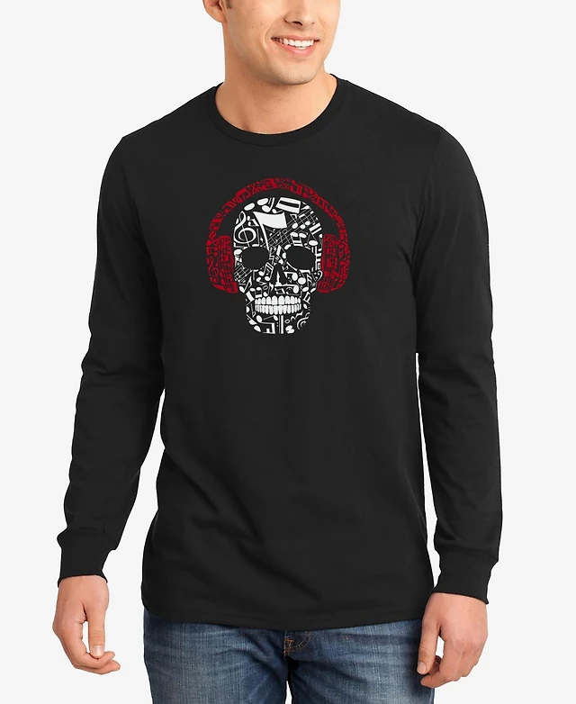 La Pop Art Men's Music Notes Skull Word Long Sleeves T-shirt