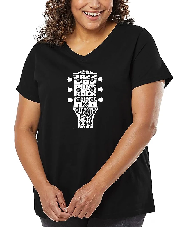 La Pop Art Plus Guitar Head Music Genres Word V-Neck T-Shirt