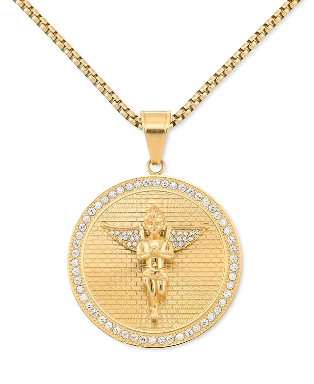 Legacy for Men by Simone I. Smith Crystal Angel Disc 24" Pendant Necklace in Gold-Tone Ion-Plated Stainless Steel