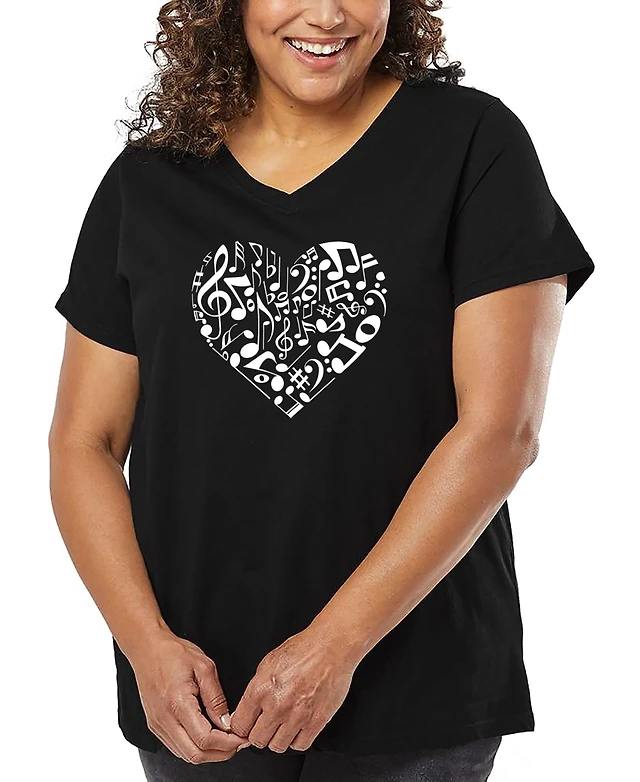 La Pop Art Plus Heart Notes Word V-Neck T-Shirt