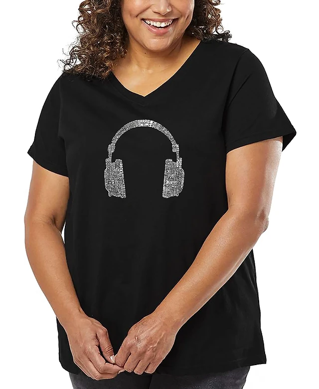 La Pop Art Plus 63 Different Genres Of Music Word V-Neck T-Shirt