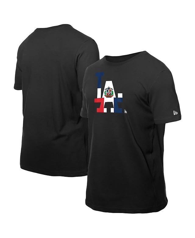 New Era Men's Black Los Angeles Dodgers Dominican Republic Flag Logo T-Shirt