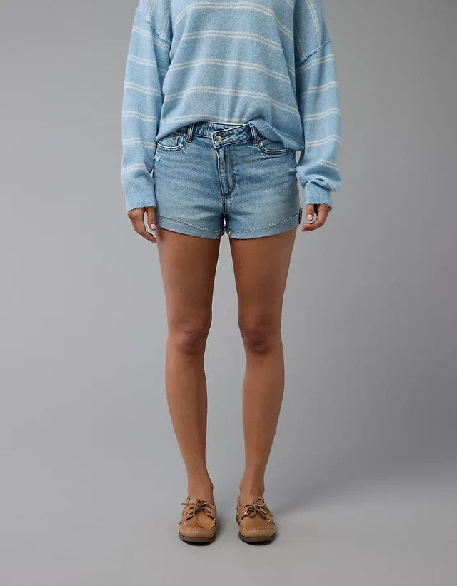 Ultra Low-Rise Medium Wash Denim Shortie Shorts