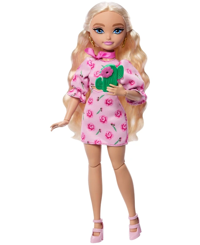 Barbie Fashionistas Doll 233 in Checkered Flower Midi Dress, Black Hair