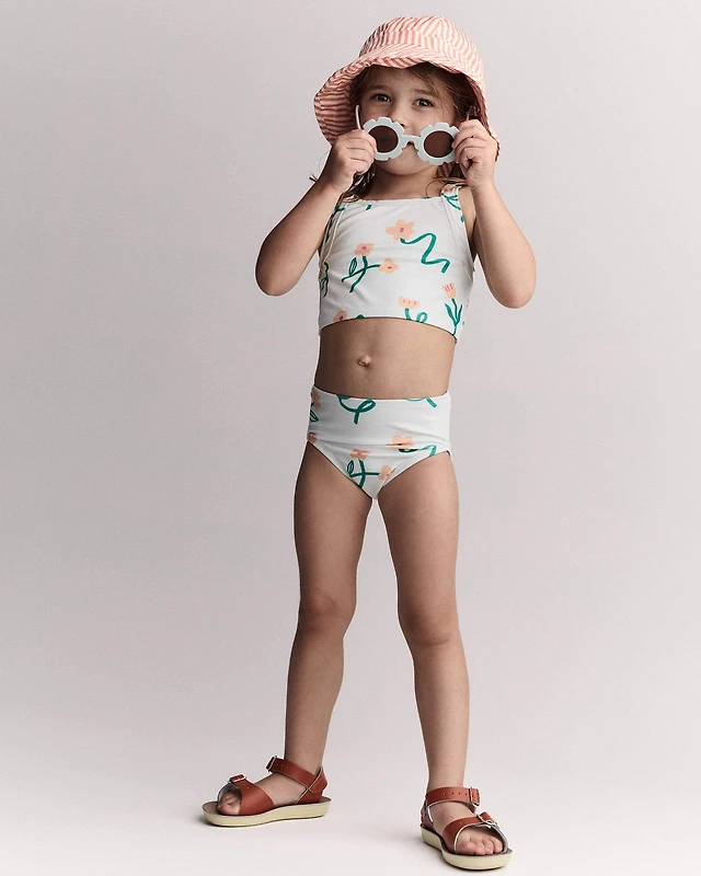 Snapper Rock Little Girls Tropical Glow Recycled Leg Frill Surf Suit