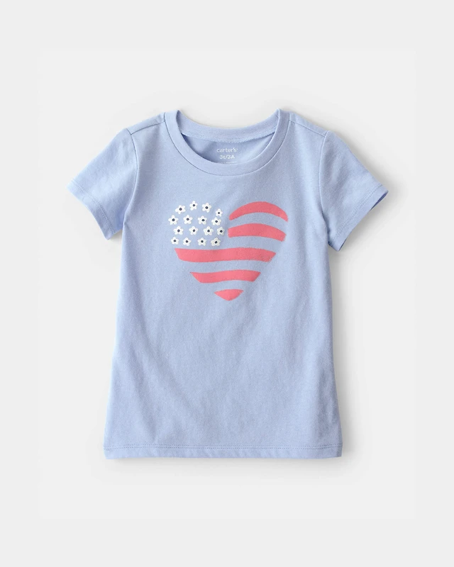 Toddler Girl Fourth of July Heart Flag Graphic Tee - Blue