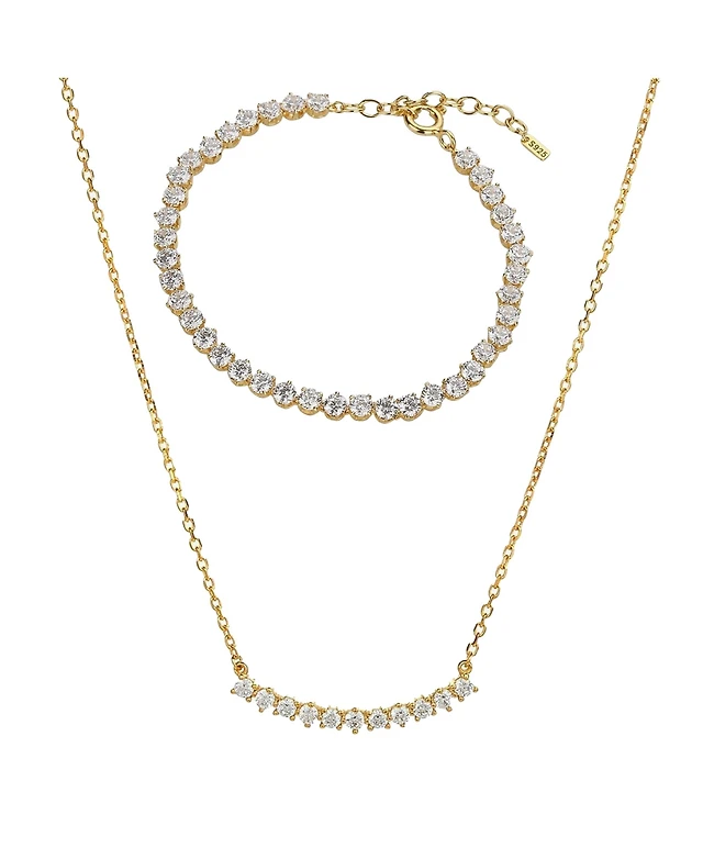 Bearfruit Jewelry Sterling Silver 18k Gold Plated Josephine Tennis Necklace & Bracelet Set