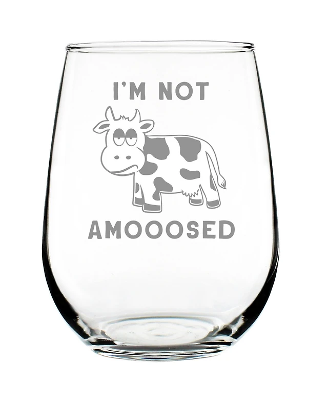 Bevvee I'm not Amooosed Funny Cow Gifts Stem Less Wine Glass, 17 oz