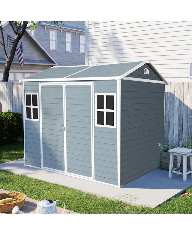 Streamdale 8ft x 6ft Outdoor Metal Storage with Lockable Sliding Doors and Transparent plate for Garden, Lawn (Gray)