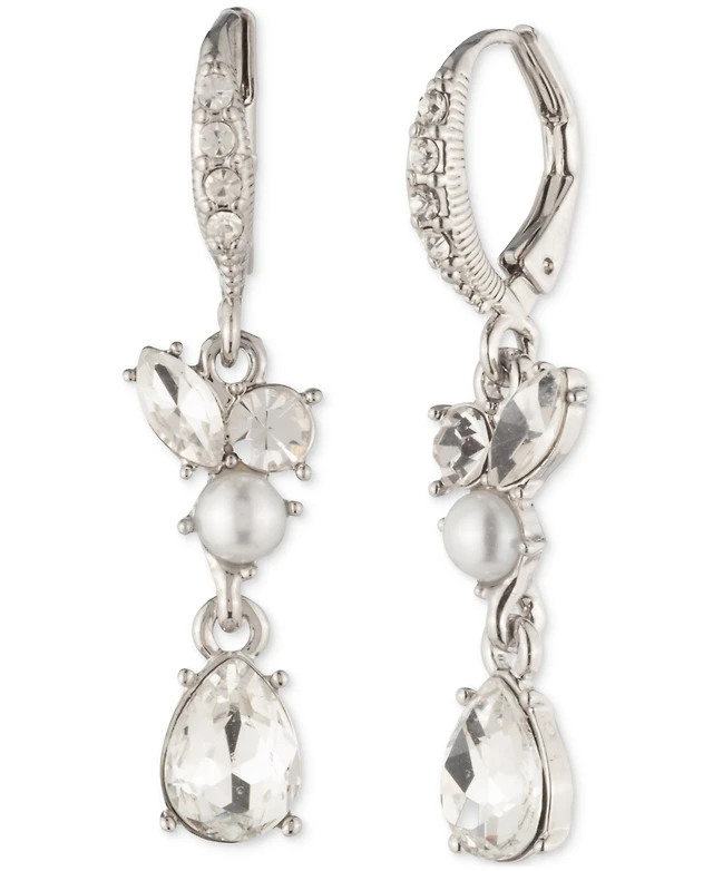 Givenchy Silver-Tone Crystal & Imitation Pearl Double Drop Earrings