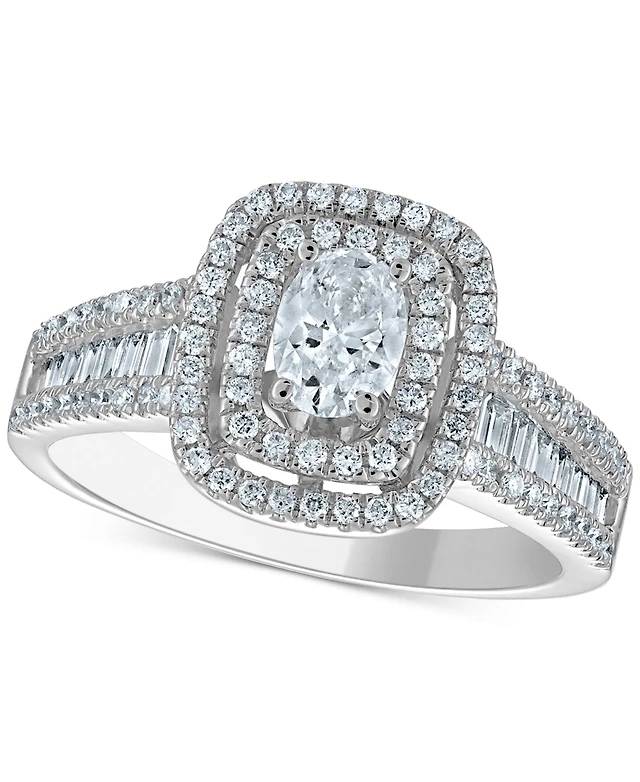 Diamond Oval Double Halo Engagement Ring (1 ct. t.w.) in 14k White Gold