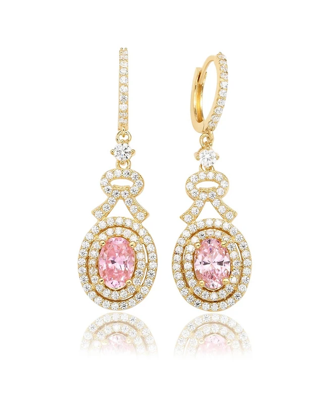 Suzy Levian Sterling Silver Cubic Zirconia Regal Oval Double Halo Drop Dangle Earrings