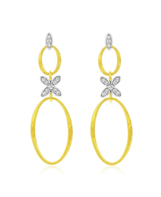 Suzy Levian Sterling Silver Oval Cut Topaz And Sapphire Double Halo Stud Earrings
