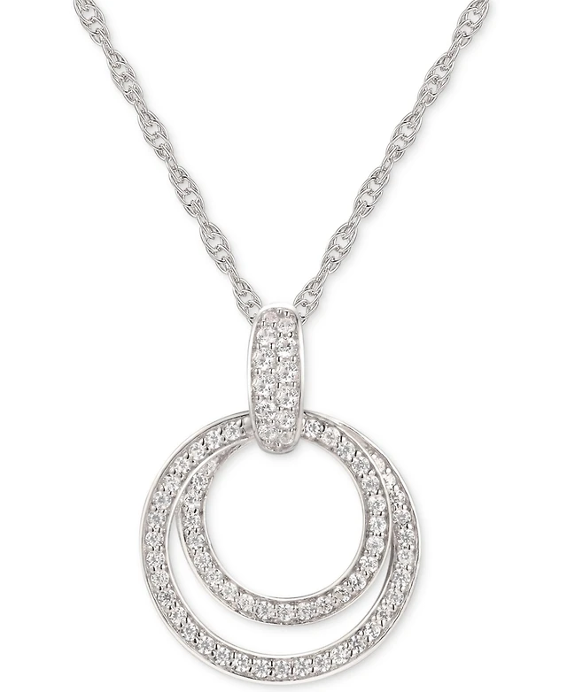 Cubic Zirconia Double Circle 18" Pendant Necklace in Sterling Silver