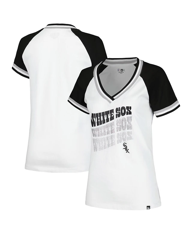 New Era Women's White Chicago Sox Jersey Double Binding Raglan V-Neck T-Shirt