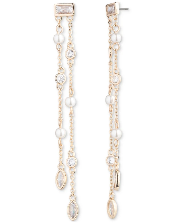 Emily in Paris Gold-Tone Cubic Zirconia & Imitation Pearl Double-Row Linear Drop Earrings