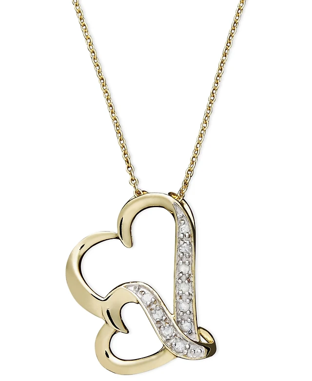 1/15 CT. T.w. Diamond Heart Outline and Bar Double Strand Necklace in Sterling Silver - 20"