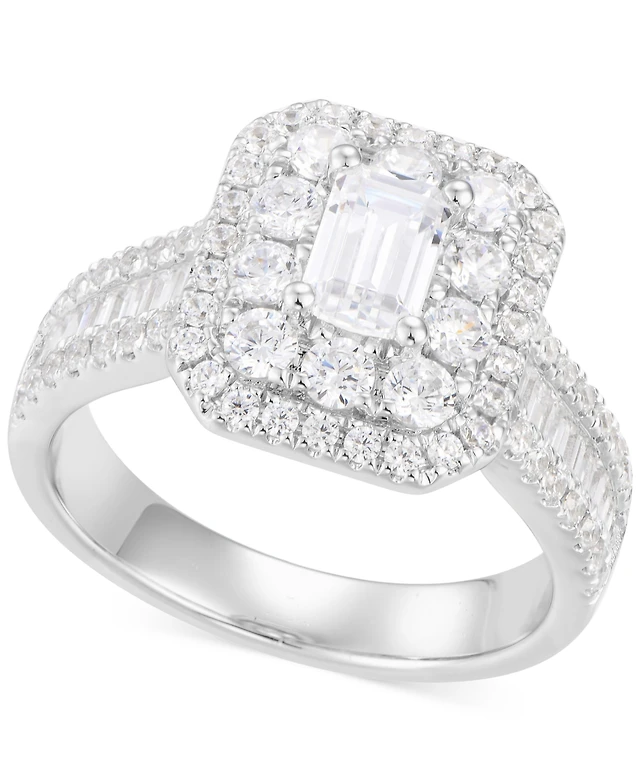 Diamond Emerald-Cut Double Halo Engagement Ring (1/2 ct. t.w.) in 14k White Gold