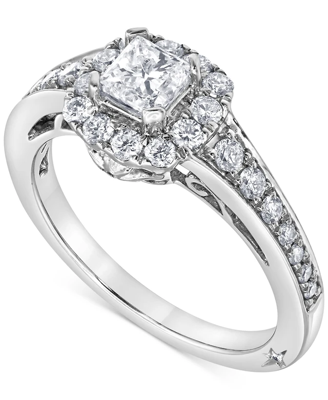 Now + Forever Certified Emerald-Cut Diamond Halo Engagement Ring 3/4 ct tw Platinum
