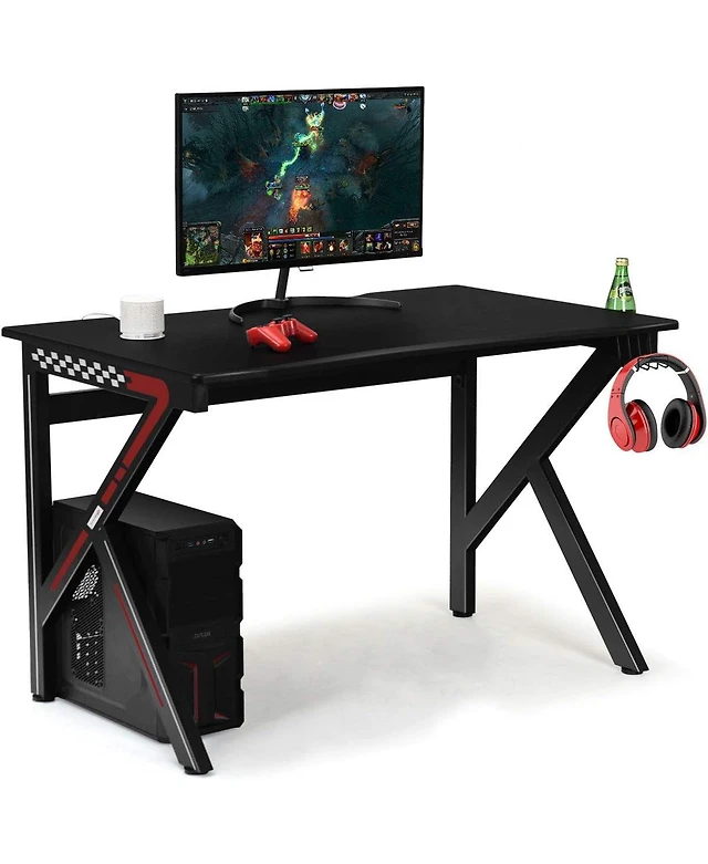 Multifunctional E-Sport Gaming Desk with Headset Hook and Cup Holder