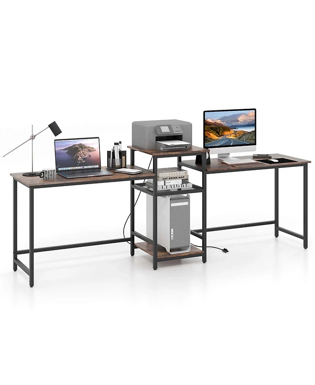 2-Person Reversible Computer Desk Long Office Desk with Led Lights