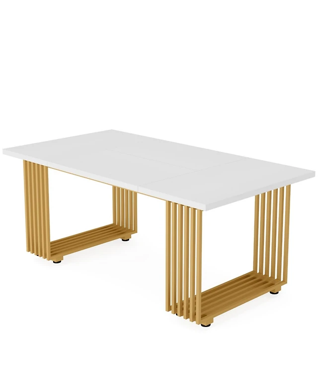 Tribesigns Modern Computer Desk with 2 Drawers, 41 Inches Study Writing Office Desk, Makeup Vanity Table Desk with Gold Metal Frame, White & Gold