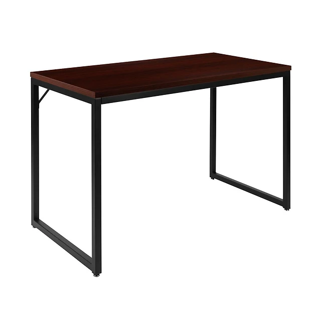 Modern Metal Frame Computer Desk with Cherry Wood Finish Top