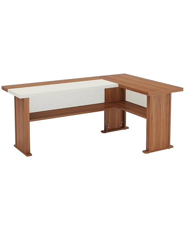 Front Reception Office Desk with Open Shelf and Lockable Drawer